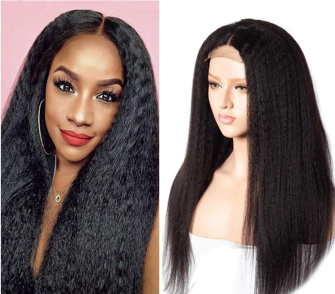 Tnice Kinky Straight Human Hair Wig 4x4 Yaki Lace Front 24in